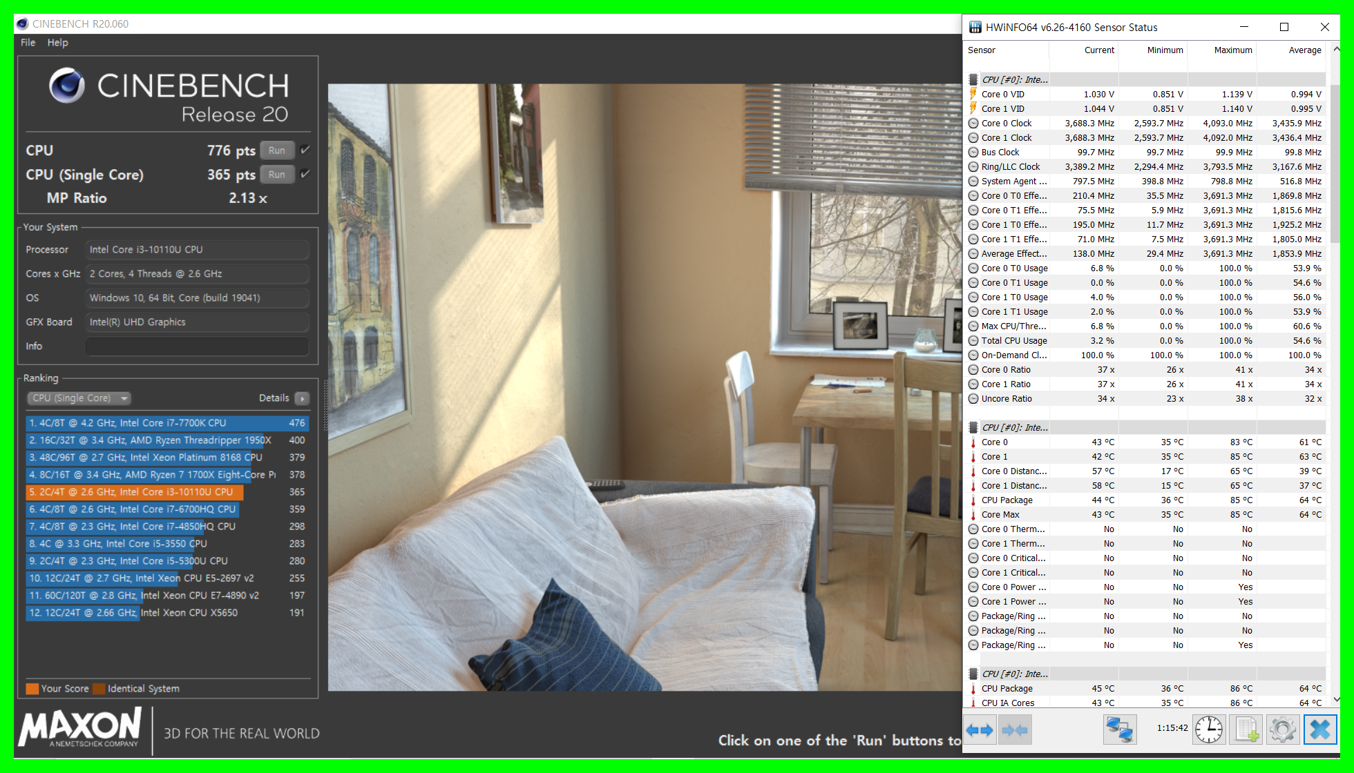 지금까지 i3-10110U 스펙 및 성능을 확인해봤습니다.