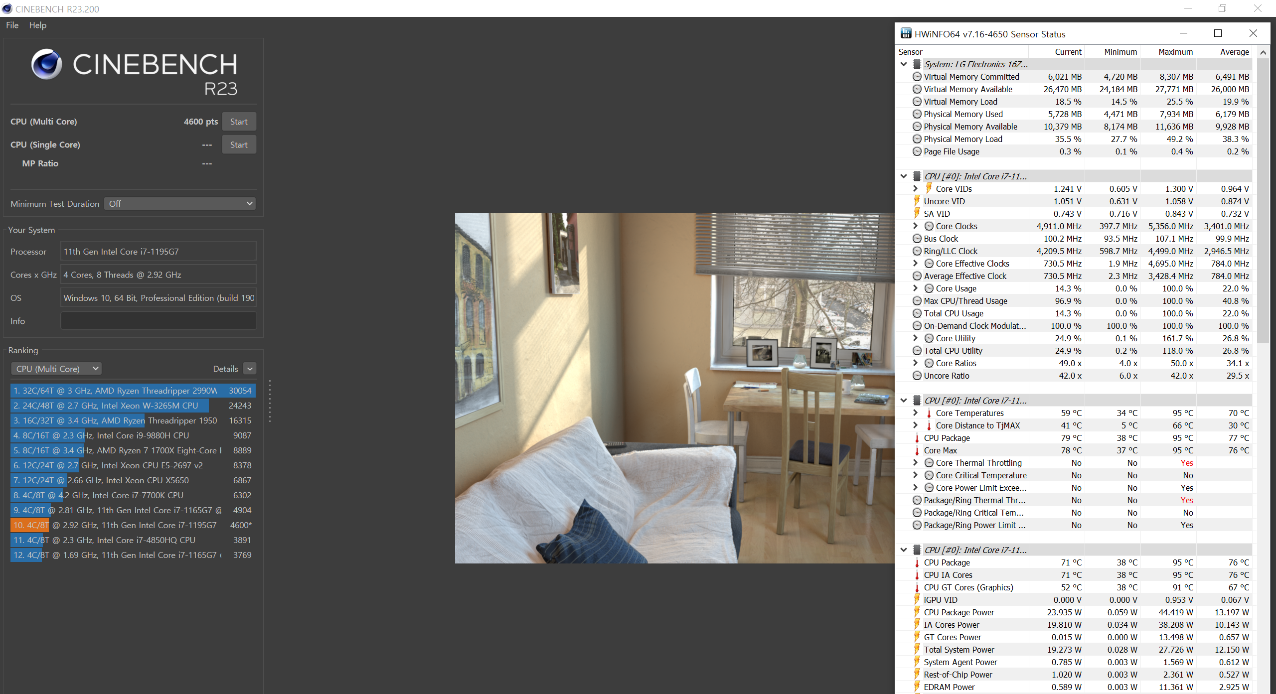 사실 i7-1195G7는 더 높은 점수가 나와야 정상이지만, 극한의 가벼움을 추구하는 lg그램 설계 특성상 발열 때문에 퍼포먼스에서 손해를 보게 됩니다. 반면 최대 발열은 AMD 고성능 랩톱 프로세서보다 낮은 편입니다. 장단점이 있습니다.